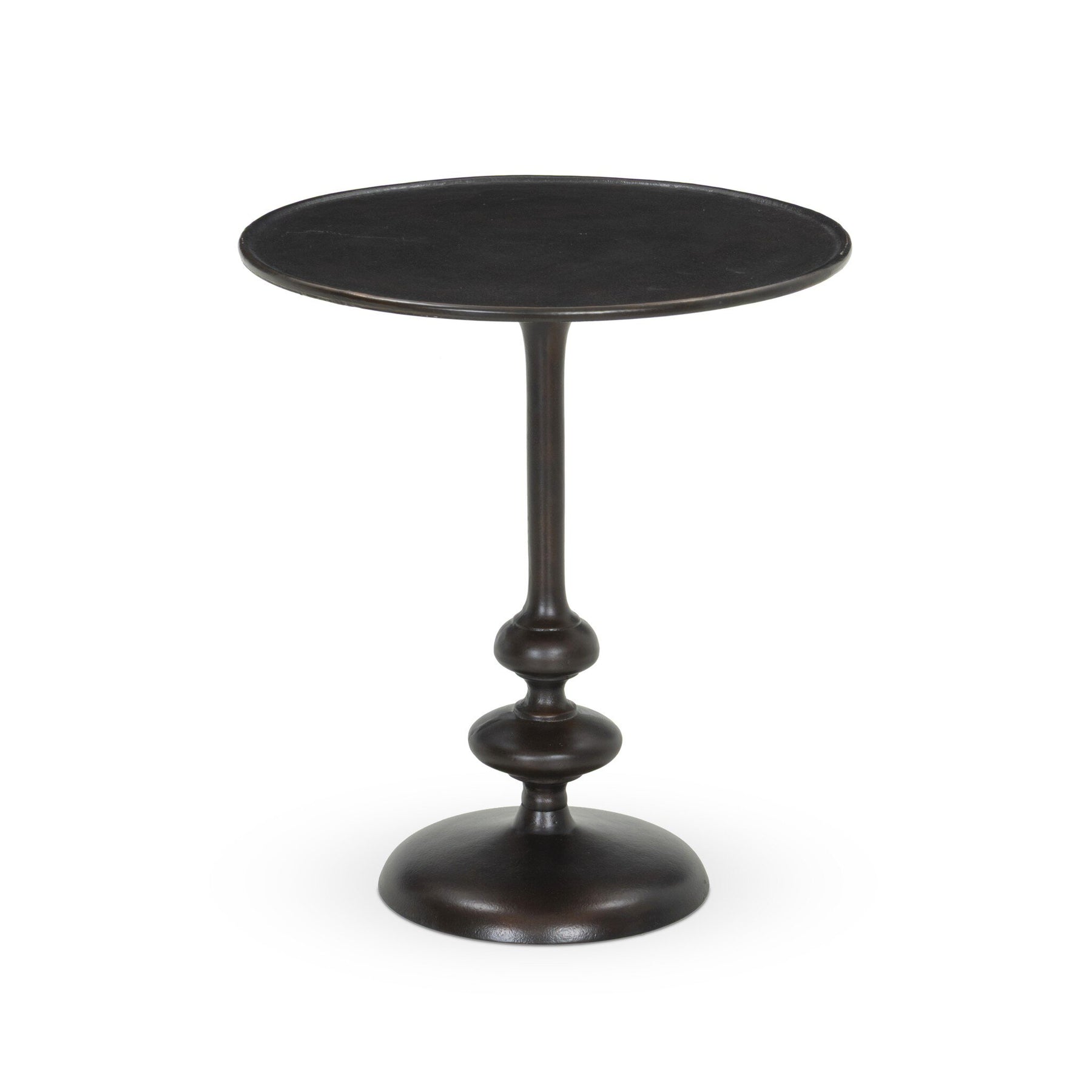 An elegant accent. Textural cast aluminum adds movement to the pedestal table. Sized to nestle beside a sofa or between two chairs.