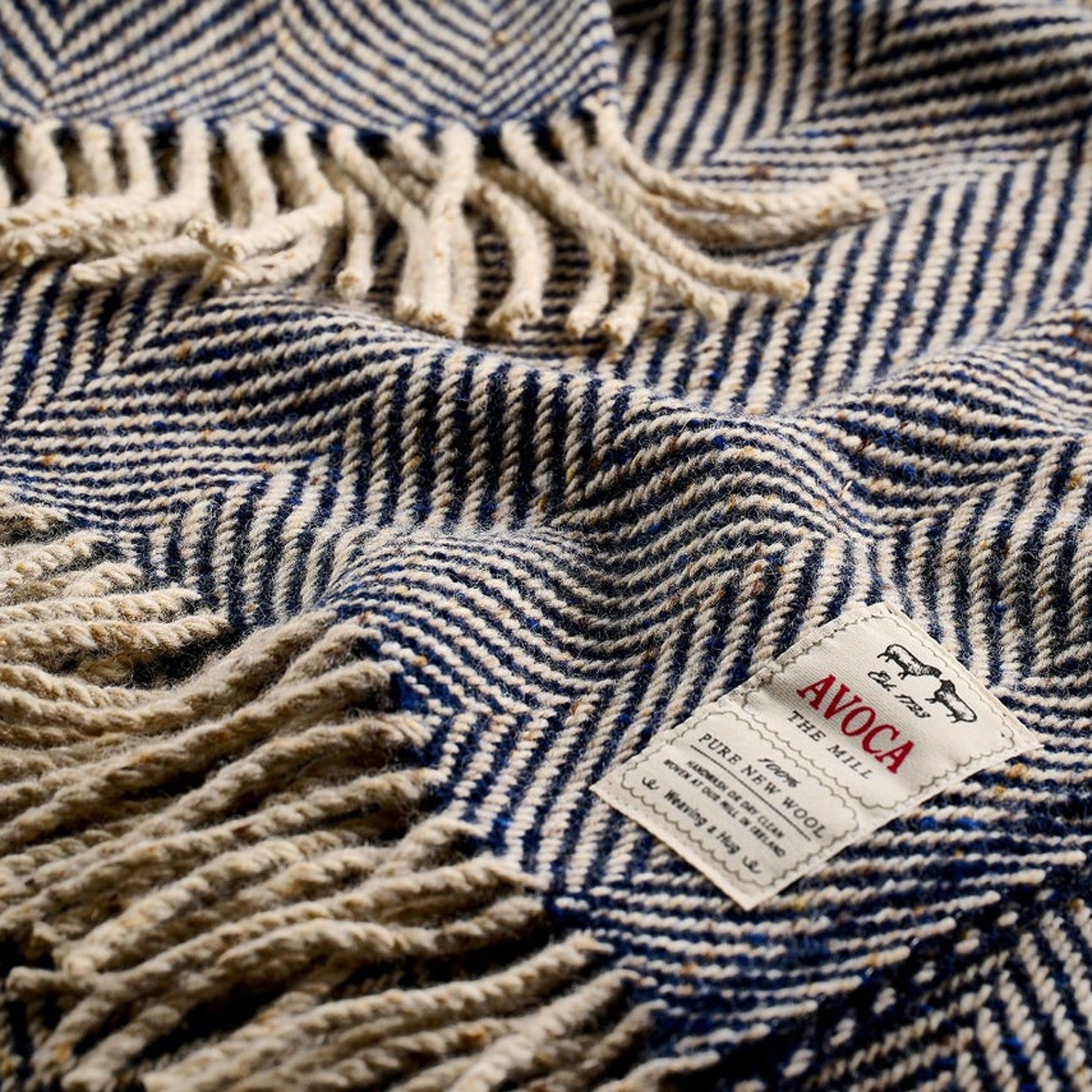 In a rich palette of navy and oatmeal, this luxurious throw suits any interior. Expertly crafted at the Avoca Mill in Ireland, it’s woven from thick Donegal yarn in a timeless herringbone pattern and finished with chunky fringing, adding both warmth and rustic elegance to your space.